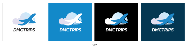 디엠씨트립스의 심볼마크는 여행테마와 알맞게 연한 그라데이션과 대비되는 솔리드 블루 컬러를 함께 사용했습니다.